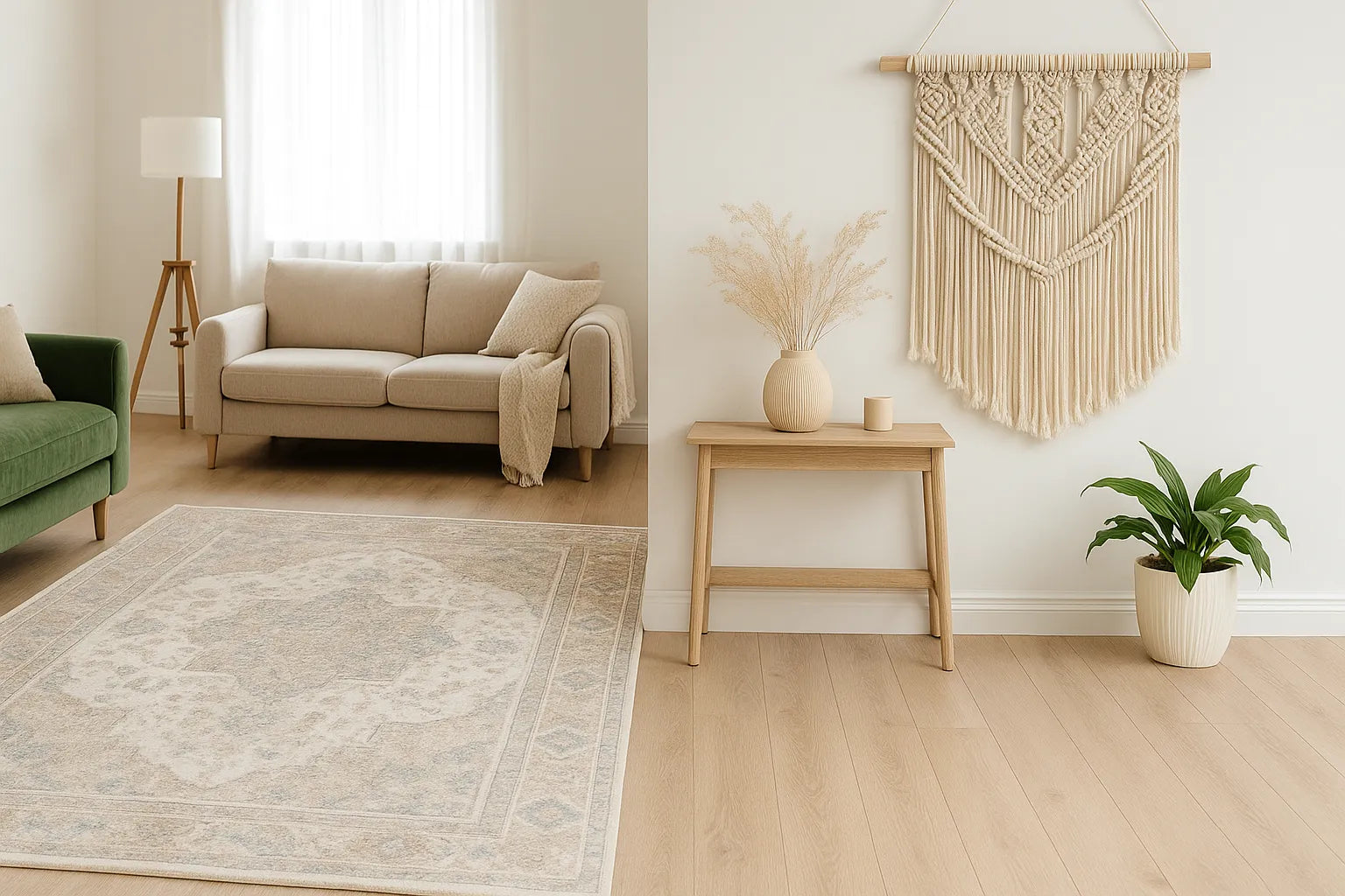 Handwoven Cotton Macrame Wall Hanging Tapestry Beige & Dusty Rose Decor